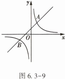 (2) 求出这两个函数图象的另一个交点 $ B $ 的坐标,并根据图象写出使反比例函数值大于一次函数值的 $ x $ 的取值范围。