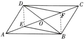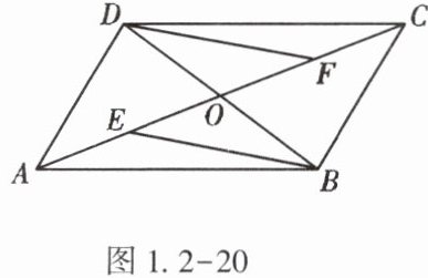 18. (★★)(2022·十堰)如图 1.2 - 20,在 $□ ABCD$ 中,$AC$,$BD$ 相交于点 $O$,$E$,$F$ 分别是 $OA$,$OC$ 的中点。