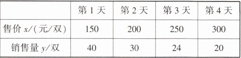 18. (★★)某中学组织学生到商场参加社会实践活动,他们参与了某种品牌运动鞋的销售工作,已知该运动鞋每双的进价为120元,为寻求合适的销售价格进行了4天的试销,试销情况如下表所示:
