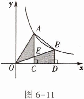 17. ($★★$)如图$6 - 11$,$A$,$B$是反比例函数$y = \dfrac{4}{x}(x > 0)$图象上的任意两点,分别过$A$,$B$作$x$轴的垂线,垂足分别为$C$,$D$,连接$OA$,$OB$,$AB$,$AC$交$OB$于点$E$.