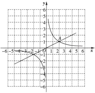 19. ($★★$)已知正比例函数$y_{1} = ax(a\neq 0)$与反比例函数$y_{2} = \dfrac{k}{x}(k\neq 0)$的图象在第一象限内交于点$A(2,1)$.