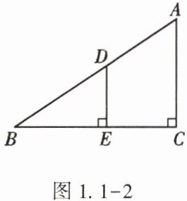 3. (★)如图1.1-2,在Rt△ABC中,∠C=90°,D是AB边上任意一点,DE⊥BC于点E,则:(1)