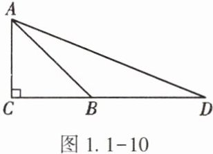 17. (★★)如图1.1-10,在等腰直角三角形ABC中,∠C=90°,点D在CB的延长线上,且BD=AB,求∠ADB的正切值.