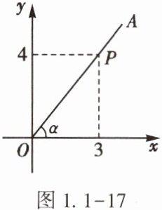 10. (★)如图1.1-17,P是∠α的边OA上一点,且点P的坐标为(3,4),则sinα的值为【 】