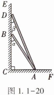 13. (★)如图1.1-20,两根竹竿AB和AD斜靠在墙CE上,量得∠ABC=α,∠ADC=β,则竹竿AB与AD的长度之比为【 】