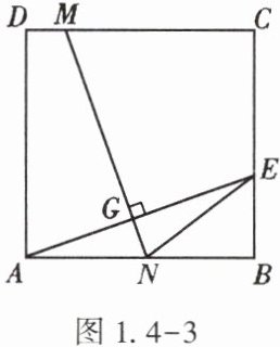 17. (★★)如图$1.4 - 3$,在正方形$ABCD$中,$E$为$BC$上一点,将正方形折叠,$MN$垂直平分$AE$,垂足为$G$,$MN$分别交$CD$,$AB$于点$M$,$N$,若$\tan\angle AEN=\frac{1}{3}$,$DC + CE = 10$。
