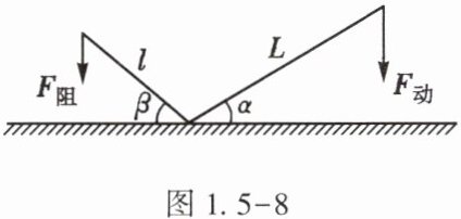 10. (★★)如图1.5-8,撬钉子的工具是一个杠杆,动力臂$L_1 = L·\cos\alpha$,阻力臂$L_2 = l·\cos\beta$,若动力F的用力方向始终保持竖直向下,当阻力不变时,则杠杆向下运动时的动力变化情况是【 】