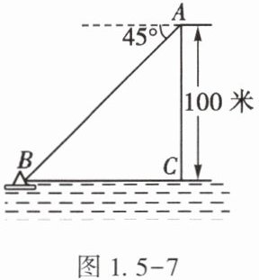 9. (★)如图1.5-7,在高出海平面100米的悬崖顶A处,观测海平面上一艘小船B,并测得它的俯角为45°,则船与观测者之间的水平距离BC为