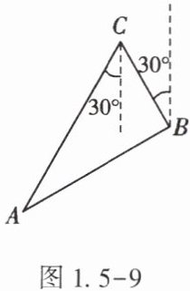 11. (★★)在一次夏令营活动中,小亮从位于A点的营地出发,沿北偏东60°方向走了5km到达B地,然后再沿北偏西30°方向走了若干千米到达C地,测得A地在C地南偏西30°方向(如图1.5-9),则A,C两地间的距离为【 】