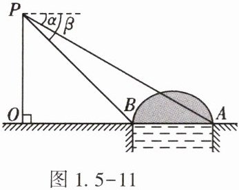 13. (★★)如图1.5-11,为了测量大桥的长度,一架直升飞机位于距地面O点450m的P处,观测大桥两端点,得俯角分别是α=30°,β=45°,且A,B,O三点在同一直线上,求大桥AB的长.(结果精确到1m,参考数据:$\sqrt{3}≈1.732$)