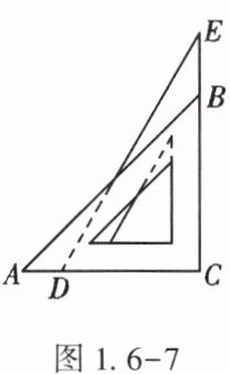 9. (★)将一个含 $ 30° $ 角的三角板和一个含 $ 45° $ 角的三角板按如图 1.6 - 7 摆放,$ \angle ACB $ 与 $ \angle DCE $ 完全重合,$ \angle C = 90° $,$ \angle A = 45° $,$ \angle EDC = 60° $,$ AB = 4\sqrt{2} $,$ DE = 6 $,则 $ EB = $