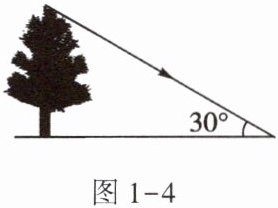 6. (★) 如图 1 - 4,当太阳光线与水平地面成 $30^{\circ}$ 角时,一棵树的影长为 12m,则该树高为【 】