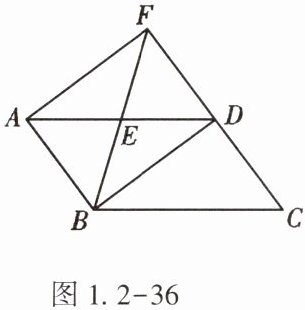 19. (★★)(2022·云南)如图1.2-36,在平行四边形ABCD中,连接BD,E为线段AD的中点,延长BE与CD的延长线交于点F,连接AF,$ ∠BDF = 90^{\circ} $。