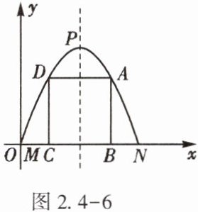 11. (★★)如图 2.4 - 6,有一块铁皮,拱形边缘呈抛物线状,$ MN = 4dm $,抛物线顶点到 $ MN $ 的距离是 $ 4dm $. 要在铁皮上截下一矩形 $ ABCD $,使矩形顶点 $ B $,$ C $ 落在 $ MN $ 上,$ A $,$ D $ 落在抛物线上,试问:这样截下的矩形铁皮周长能否等于 $ 8dm $?请说明理由.