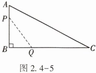 10. (★★)如图 2.4 - 5,在 $ \triangle ABC $ 中,$ \angle B = 90^{\circ} $,$ AB = 12cm $,$ BC = 24cm $,动点 $ P $ 从点 $ A $ 开始沿边 $ AB $ 向 $ B $ 以 $ 2cm/s $ 的速度移动(不与点 $ B $ 重合),动点 $ Q $ 从点 $ B $ 开始沿边 $ BC $ 向 $ C $ 以 $ 4cm/s $ 的速度移动(不与点 $ C $ 重合). 如果 $ P $,$ Q $ 分别从 $ A $,$ B $ 同时出发,那么经过