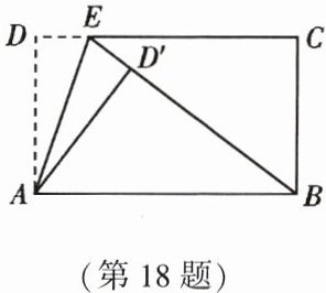 18. (9 分)如图,矩形 $ABCD$ 中,$AD = BC = 6$,$AB = CD = 10$. $E$ 为射线 $DC$ 上的一个动点,$\triangle ADE$ 与 $\triangle AD'E$ 关于直线 $AE$ 对称,当 $\triangle AD'B$ 为直角三角形时,$DE$ 的长是多少?