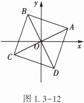 8. (★) (2024·常州) 如图 1.3 - 12,在平面直角坐标系 $xOy$ 中,正方形 $ABCD$ 的对角线 $AC$,$BD$ 相交于原点 $O$. 若点 $A$ 的坐标是 $(2,1)$,则点 $C$ 的坐标是