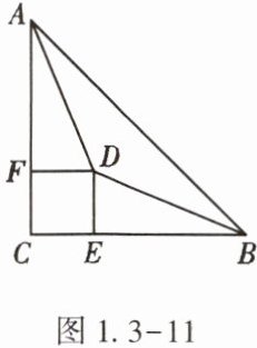7. (★★) 如图 1.3 - 11,在 $Rt\triangle ABC$ 中,$\angle C = 90^{\circ}$,$\angle CAB$ 的平分线与 $\angle CBA$ 的平分线相交于点 $D$,$DE\perp BC$ 于点 $E$,$DF\perp AC$ 于点 $F$,求证:四边形 $CEDF$ 为正方形.
