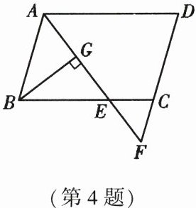 4. 如图,在$□ ABCD$中,$AB = 10$,$AD = 15$,$\angle BAD$的平分线交$BC$于点$E$,交$DC$的延长线于点$F$,$BG \perp AE$于点$G$,若$BG = 8$,则$\triangle CEF$的周长为 (
