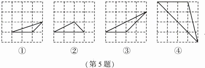5. 如图,在大小为$4×4$的正方形网格中的四个三角形是相似三角形的是 (