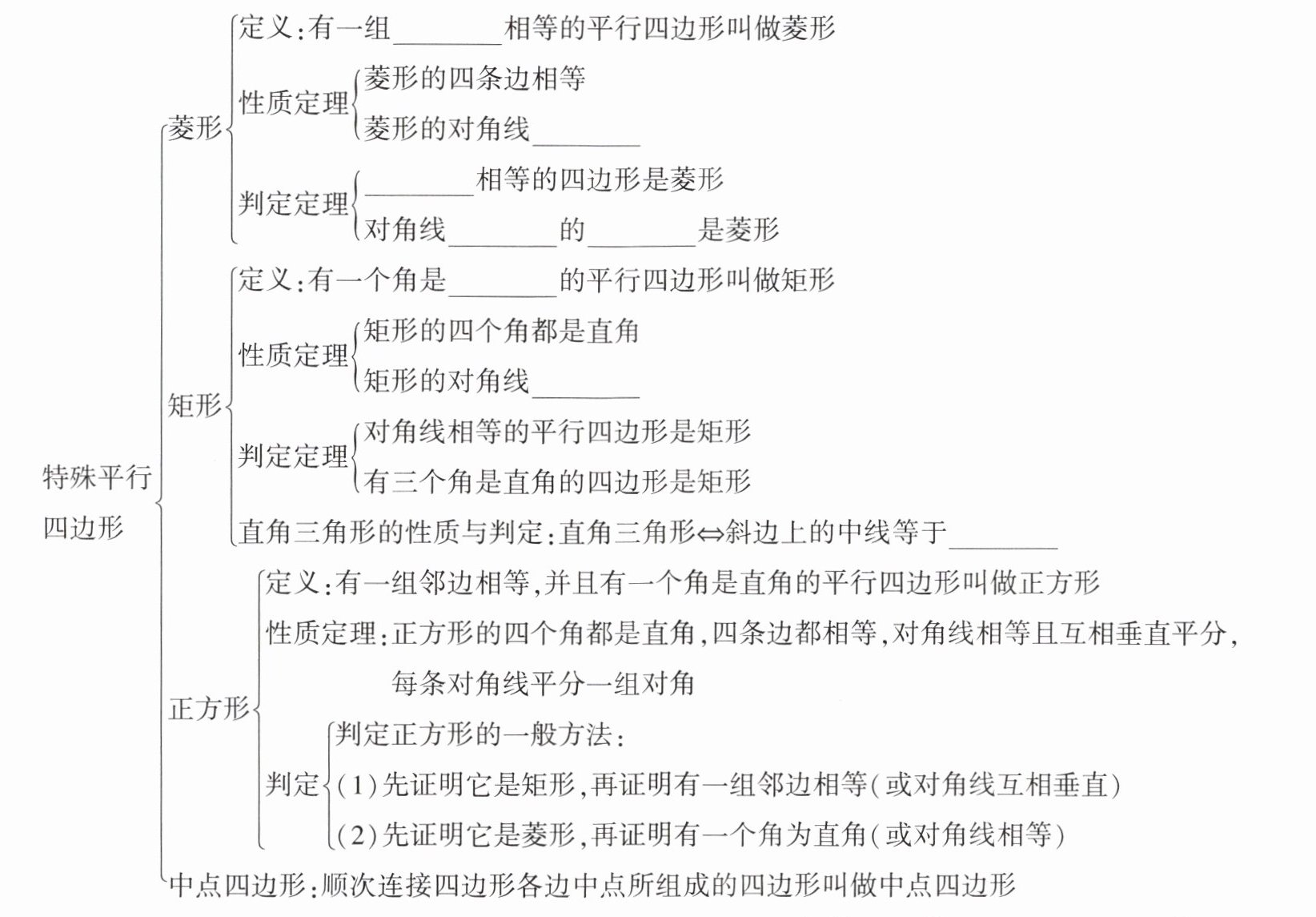 邻边 互相垂直 四条边 互相垂直 平行四边形 直角 相等 斜边的一半