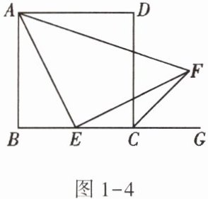 4. (★★)如图 1 - 4,正方形 ABCD 的边长为 4,E 是 BC 的中点,连接 AE,作 EF⊥AE 交∠DCG 的平分线于点 F,连接 AF,则△AEF 的周长为