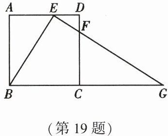 19. (10分)如图,在正方形$ABCD$中,$E$为边$AD$上的点,点$F$在边$CD$上,且$CF = 3FD$,$\angle BEF = 90^{\circ}$。