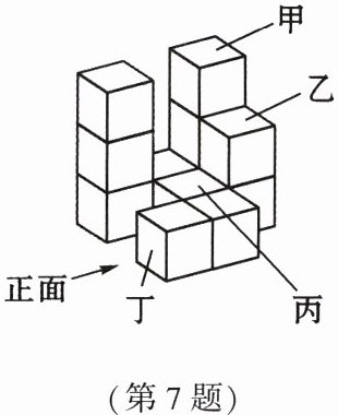 7. 如图所示的立体图形由大小相同的正方体积木堆叠而成. 判断拿走图中的哪一个积木后,此图形主视图的形状会改变 (