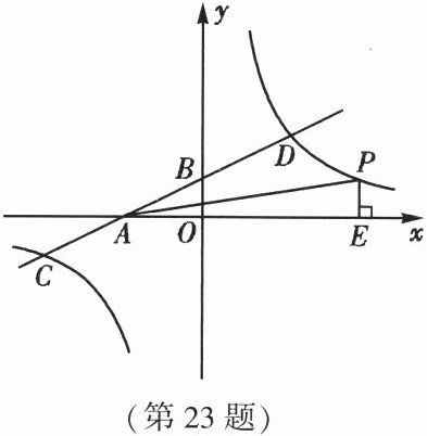 (3)点 $ P $ 是反比例函数在第一象限的图象上的点,且点 $ P $ 的横坐标大于 2,过点 $ P $ 作 $ x $ 轴的垂线,垂足为 $ E $。当 $ \triangle APE $ 的面积为 3 时,求点 $ P $ 的坐标。