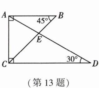 13. 将一副三角尺按如图所示方式叠放在一起,则 $ \frac{BE}{EC} $ 的值是