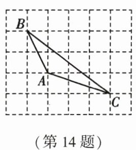 14. 如图,在边长为 1 的小正方形网格中,点 $ A $,$ B $,$ C $ 均在格点上,则 $ \tan B $ 的值为