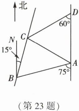 (1)由题意知,$\angle ADC = 60°$,$DC = 8\sqrt{3}$海里,$AD = 24\sqrt{3} × \frac{20}{60} = 8\sqrt{3}$(海里),