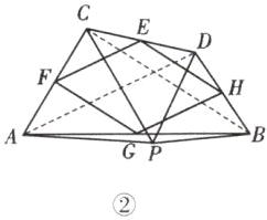 (2)【变式延伸】如图②,点 $P$ 在线段 $AB$ 的下方,$PC = PA$,$PD = PB$,$\angle APC = \angle BPD$,$E$,$F$,$G$,$H$ 分别是 $DC$,$CA$,$AB$,$BD$ 的中点,此时(1)中的结论还成立吗?若成立,请说明理由;若不成立,请举一个反例。