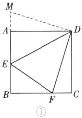 22. (11 分)(1)如图①,点 $E$,$F$ 分别在正方形 $ABCD$ 的边 $AB$,$BC$ 上,$\angle EDF = 45^{\circ}$,连接 $EF$,求证:$EF = AE + FC$。