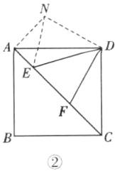 [提示]如图②,将△CDF绕点D顺时针旋转90°,可得△ADN,连接EN,由旋转的性质,可得DN = DF,AN = CF,∠DAN = ∠DCF = 45°,∠CDF = ∠ADN,