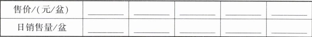 【问题情境】小莹妈妈的花卉超市以 15 元/盆的价格新购进了某种盆栽花卉,为了确定售价,小莹帮妈妈调查了附近 A、B、C、D、E 五家花店近期该种盆栽花卉的售价与日销售量情况,记录如下: