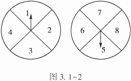 11. (★★)如图 3.1 - 2 所示的两个转盘,每个转盘均被分成四个相同的扇形,转动转盘时指针落在每个扇形内的机会均等,同时转动两个转盘,则两个指针同时落在标有奇数扇形内的概率为【 】