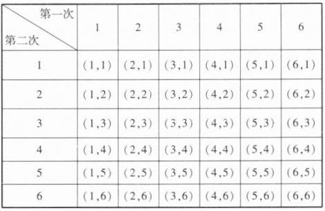 从树状图可以看出,所有可能出现的结果有36种:(1,1),(1,2),(1,3),(1,4),(1,5),(1,6),(2,1),(2,2),(2,3),(2,4),(2,5),(2,6),(3,1),(3,2),(3,3),(3,4),(3,5),(3,6),(4,1),(4,2),(4,3),(4,4),(4,5),(4,6),(5,1),(5,2),(5,3),(5,4),(5,5),(5,6),(6,1),(6,2),(6,3),(6,4),(6,5),(6,6).