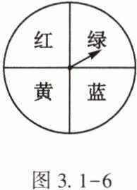 3. (★★)如图 3.1 - 6 所示的转盘,被分成面积相等的四个扇形,分别涂有红、黄、蓝、绿四种颜色. 固定指针,自由转动转盘两次,每次停止后,记下指针所指区域(指针指向区域分界线时,忽略不计)的颜色,则两次颜色相同的概率是