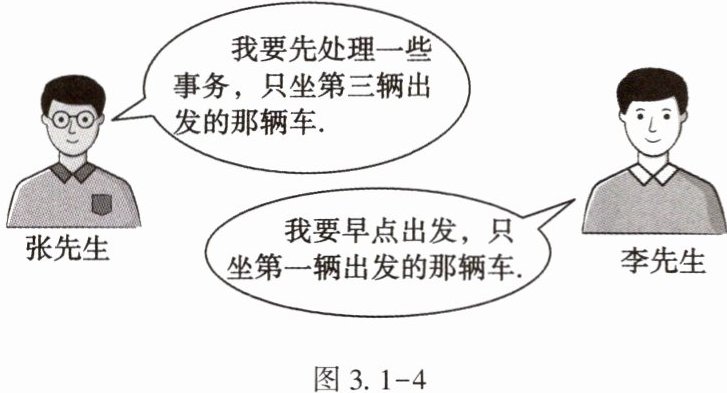 15. (★★)某公司有甲、乙、丙三辆车去南京,它们出发的先后顺序是随机的。张先生和李先生乘坐该公司的车去南京出差,但有不同的需求(如图 3.1 - 4)。