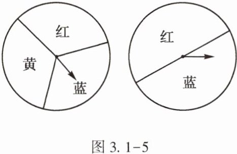 2. (★)小明和小英用如图 3.1 - 5 所示的两个转盘做“配紫色”游戏,配成紫色小明赢,否则小英赢,则小明赢的概率是