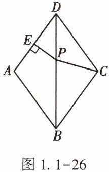5. (★)如图1.1-26,在菱形ABCD中,∠ADC=72°,AD的垂直平分线交对角线BD于点P,交AD于点E,连接CP,则∠CPB的度数为