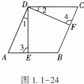 17. (★★)(2022·岳阳)如图 1.1 - 24,点$E$,$F$分别在$□ ABCD$的边$AB$,$BC$上,$AE = CF$,连接$DE$,$DF$. 有以下三个条件:①$\angle 1=\angle 2$;②$DE = DF$;③$\angle 3=\angle 4$. 请从中选择一个合适的条件作为已知条件,使$□ ABCD$为菱形.
