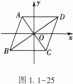 4. (★)如图1.1-25,菱形ABCD的对角线交于平面直角坐标系的原点,顶点A的坐标为(-2,3),现将菱形绕点O顺时针方向旋转180°后,A点坐标变为