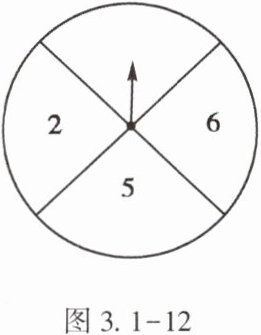 12. (★★)如图 3.1 - 12,一个被等分成 4 个扇形的圆形转盘,其中 3 个扇形分别标有数字 2,5,6,指针的位置固定,转动转盘后任其自由停止,其中的某个扇形会恰好停在指针所指的位置(若指针停在交界处时,重新转动转盘).