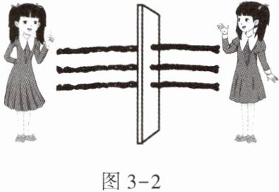 6. (★★)如图 3 - 2,有三条绳子穿过一张木板,姐妹两人分别站在木板的左、右两边,各选该边的一段绳子。若每边每段绳子被选中的机会相等,则两人选到同一条绳子的概率为
