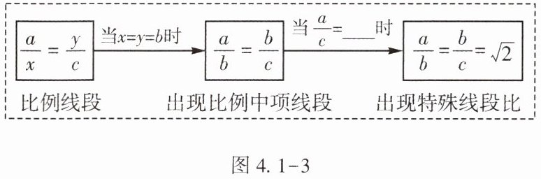 15. (★★)(2023·丽水)小慧同学在学习了九年级上册“4.1 成比例线段”3节课后,发现学习内容是一个逐步特殊化的过程,请在图4.1-3中的横线上填写适当的数值,感受这种特殊化的学习过程.