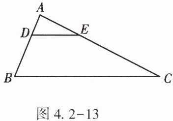 14. (★★)如图 4.2-13,$DE// BC$,且$DB = AE$,若$AB = 5$,$AC = 10$,求$AE$的长。