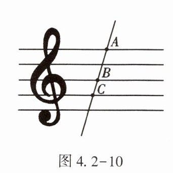 11. (★)(2022·丽水)如图 4.2-10,五线谱是由等距离、等长度的五条平行横线组成的,同一条直线上的三个点$A$,$B$,$C$都在横线上。若线段$AB = 3$,则线段$BC$的长是【 】