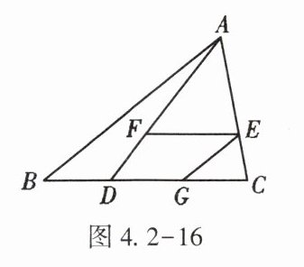 17. (★★)如图 4.2-16,在$\triangle ABC$中,点$D$在$BC$边上,连接$AD$,点$E$在$AC$边上,过点$E$作$EF// BC$,交$AD$于点$F$,过点$E$作$EG// AB$,交$BC$于点$G$,则下列式子一定正确的是【 】